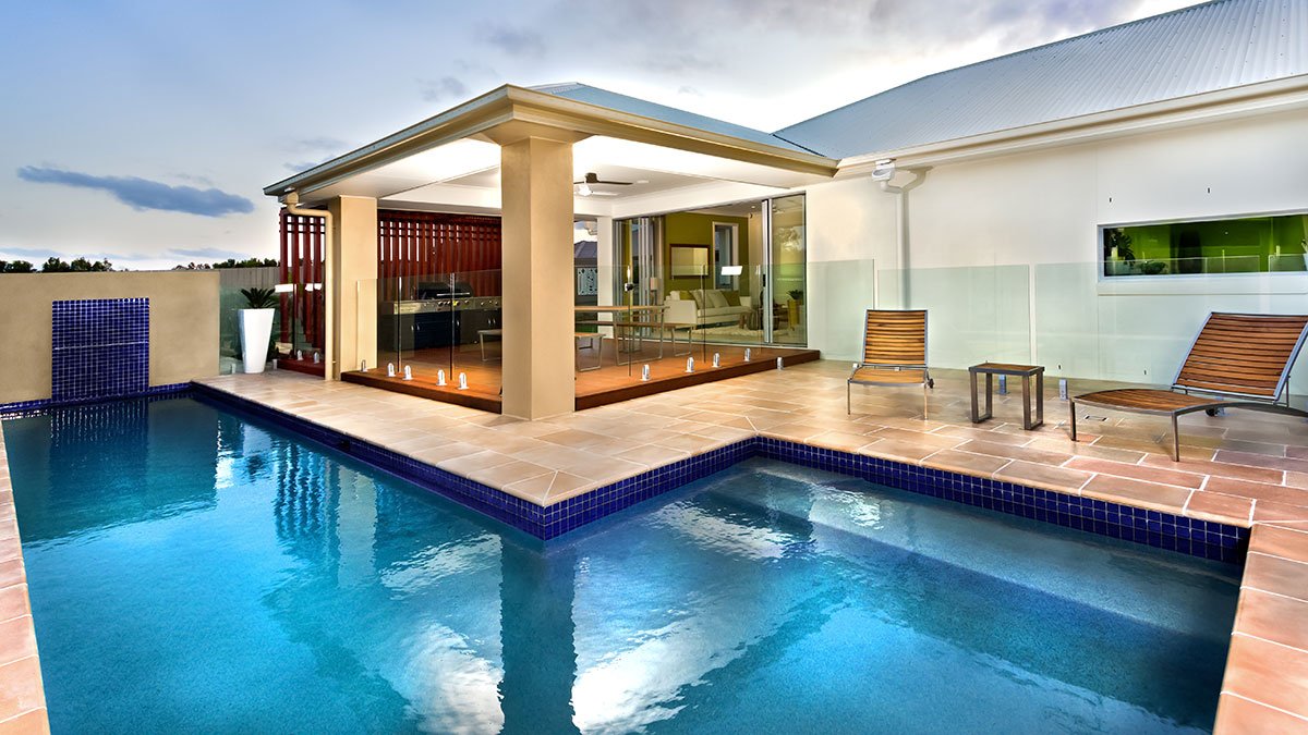Stone tiles are a great choice if you want to design a pool in an exotic, Mediterranean, classical, or tropical style. There are many different kinds of stone tiles available that are coated to withstand both the elements and chlorinated water.